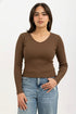 Ribbed Long Sleeve V-Neck Top Brown